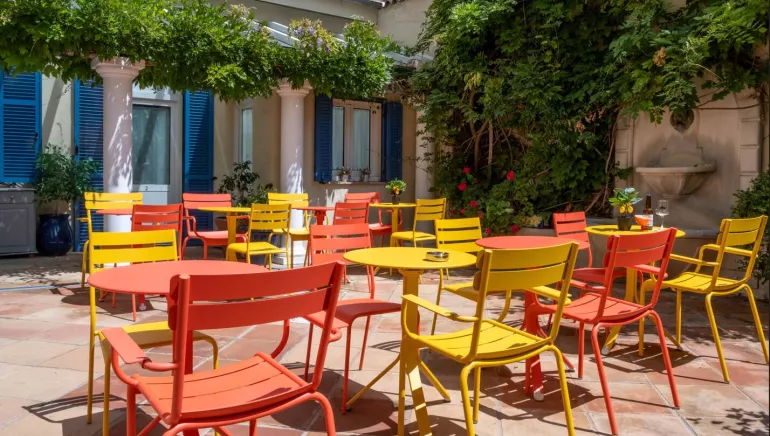 The flowery and shady patio welcomes you for a delicious buffet breakfast or a nice aperitif after a day of shopping, excursions or simply the beach (only a few steps away!).Public parking nearby. Small groups of up to 25 people are welcome, subject to availability.