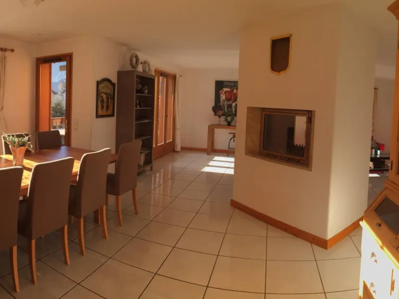 On the first floor you will find a spacious living room with a dining room and a double-sided fireplace. The first floor is also equipped with a fully furnished kitchen, a living room with television, a bathroom with toilet and shower and a bedroom (2 people). On this floor there is also a large balcony that you can enjoy for its tranquility and its magnificent view of the surrounding mountains. On this large balcony awaits you a large table for your meals or for an aperitif with a barbecue that will beautify your evenings.On the second floor you will find four bedrooms (2 x 2 and 2 x 3 people) including two bedrooms with balcony, two bathrooms and two toilets, and a laundry area with a washing machine and a dryer. Both balconies will allow you to enjoy the dominant view of the mountains throughout the day.