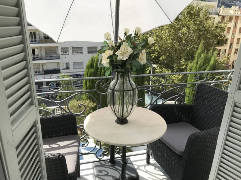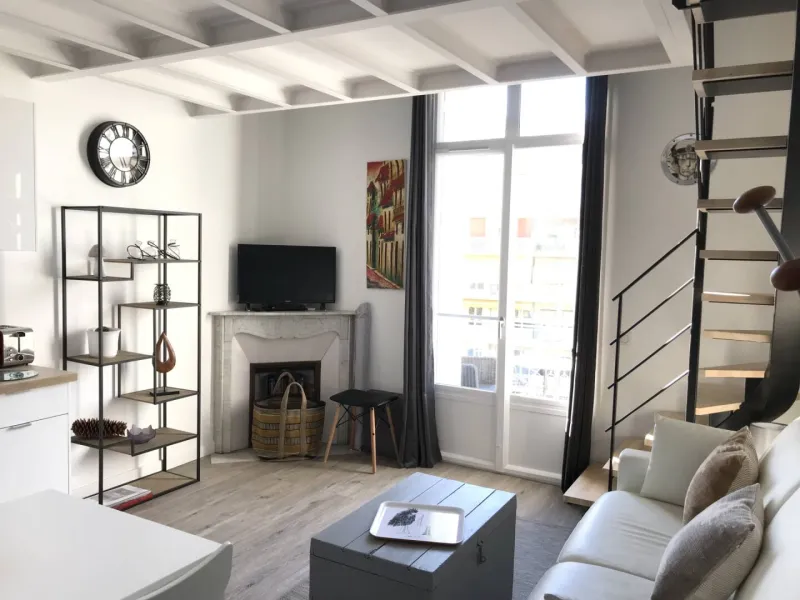 Bright and comfortable with optimized insulation, the atypical Emerald duplex is located in the Belle Époque villa "le Nid", close to shops and tramway. It features a southwest-facing balcony overlooking the landscaped garden. 1st floor. 1 bed 160x200 and 1 sofa bed 140x190.Minimum 5 nights throughout the year and 5 nights in July and August.