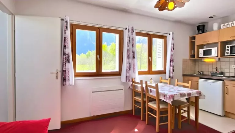 A lovely 25 m² holiday apartment sleeping 4 guests, located in a large chalet containing 8 apartments in a 1200 m² garden with barbecues. In a quiet setting and enjoying a perfect location just 4 km from Bourg d'Oisans for cycling.
