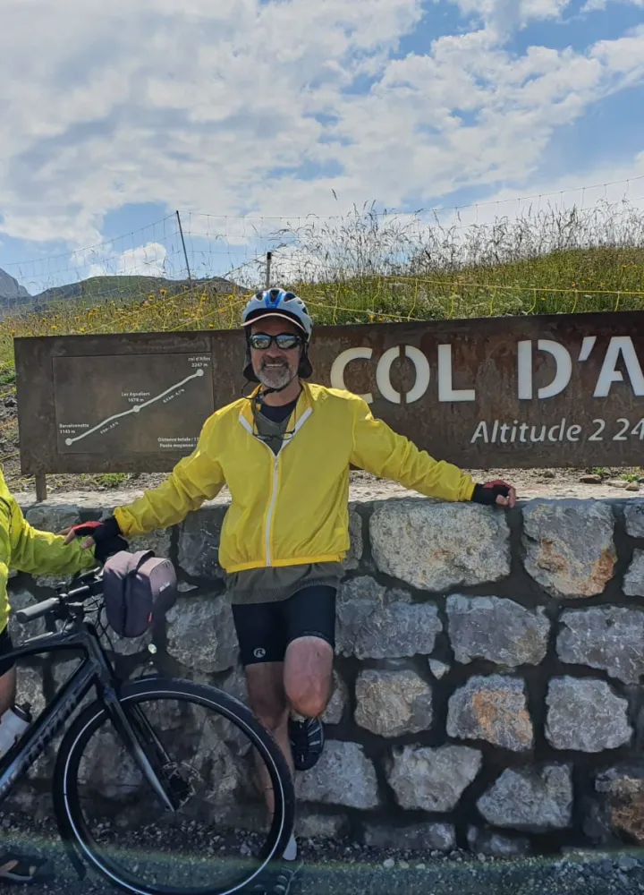 . Ik verhoog het tempo op een stuk van 6/6,5%. Er is nog 2 km te gaan. Het einde van de pas is pure gelukzaligheid omdat het stijgingspercentage - ondanks enkele stukken van 8% - erg glooiend is.