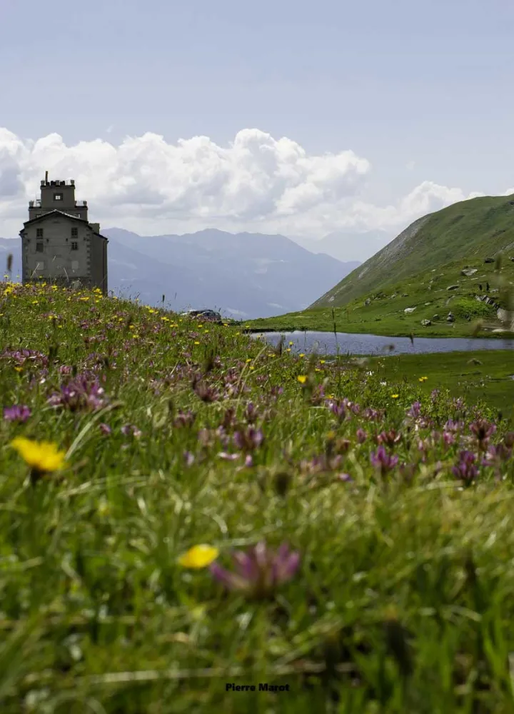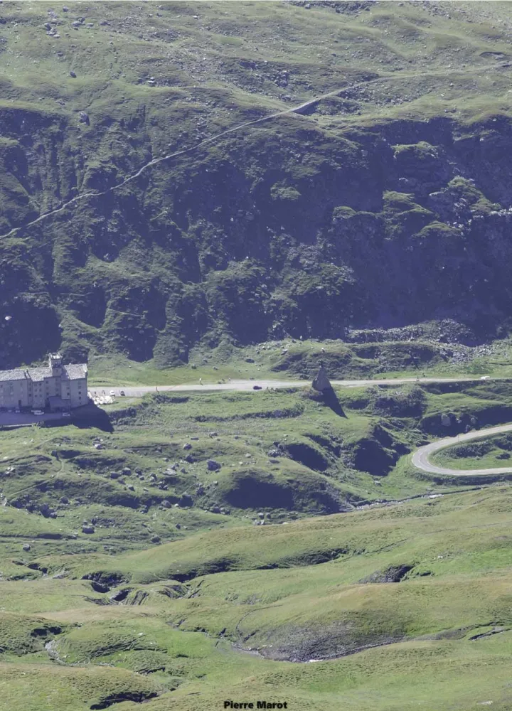 Op een hoogte van 1940 m bij PK24,3 is de Col du Petit Saint Bernard in zicht en lijkt hij redelijk dichtbij, maar alles is vaak bedrieglijk in deze situatie. Kijk eens op je snelheidsmeter, er zijn nog zo'n 5,6 km te gaan. Je kunt de Sommet des Rousses (2878 m) en de Pointe de Lancebranlette (2936 m) bewonderen. Het panorama is prachtig, een beetje ontsierd door de enorme hoogspanningslijn die tussen Bourg-St-Maurice en Italië loopt. Bourg-St-Maurice in vogelvlucht... 1100 meter lager! Op het laatste stuk neem je haarspeldbochten - 250 m aan 6% - rond het oude Hospice du Petit Saint Bernard en zijn standbeeld. De weg leidt dan rechtdoor naar de pas, omringd door de Frans-Italiaanse douaneposten. Dit is het, de Col du Petit Saint Bernard en zijn 2188 m zijn bereikt.